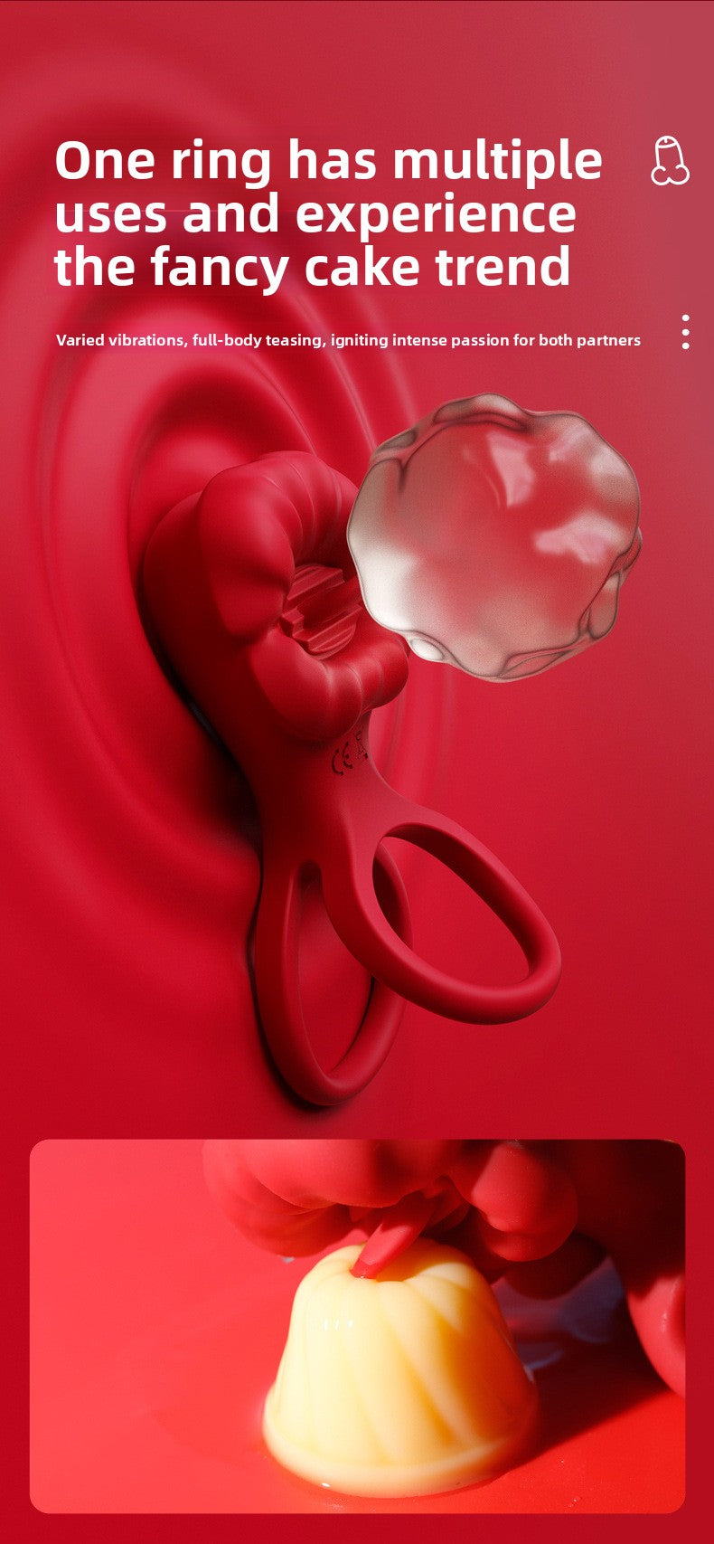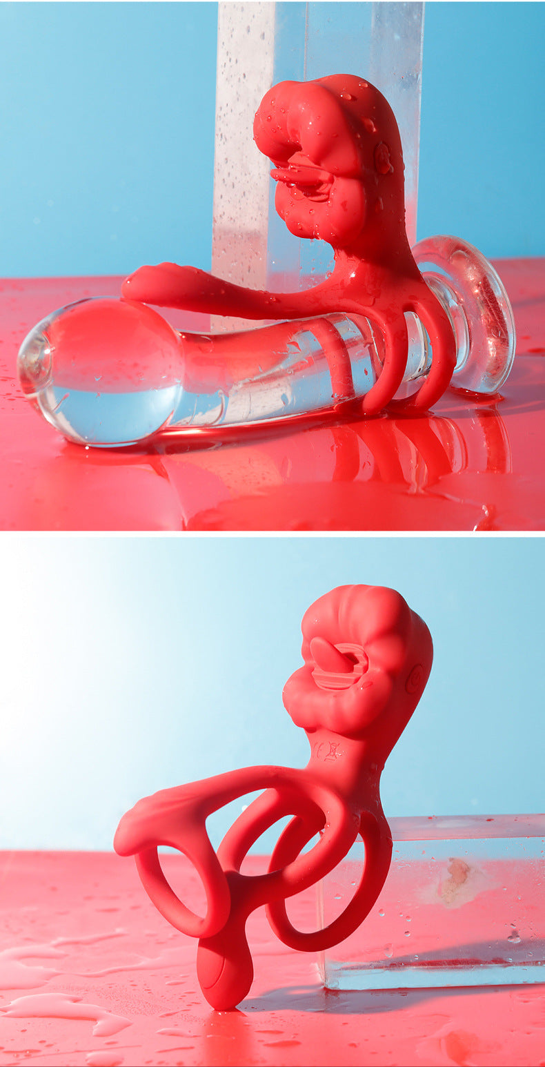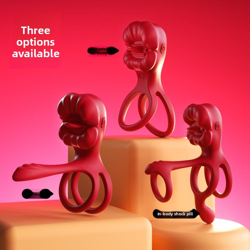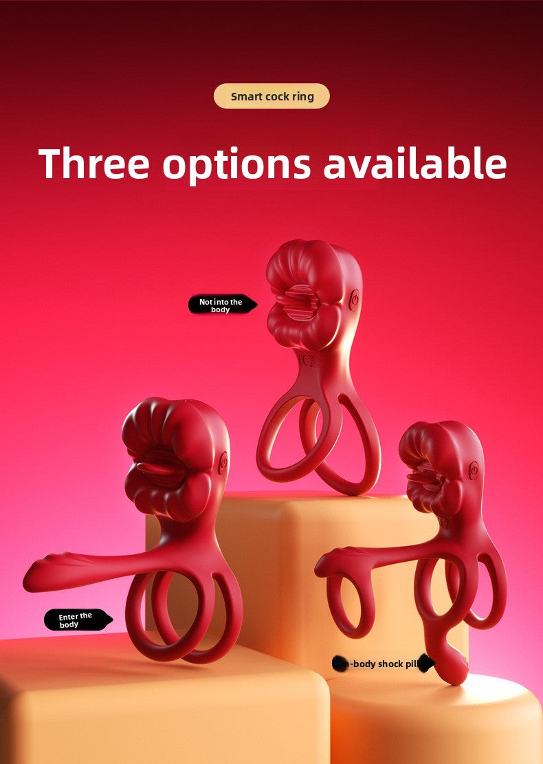 Big Mouth Cock Ring, Rose Flower Cock Ring, Couples' Sex Toys, Male Wearable, Couples' Shared Pleasure Vibrating Double Ring