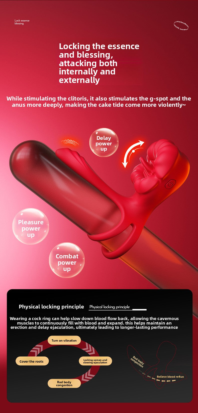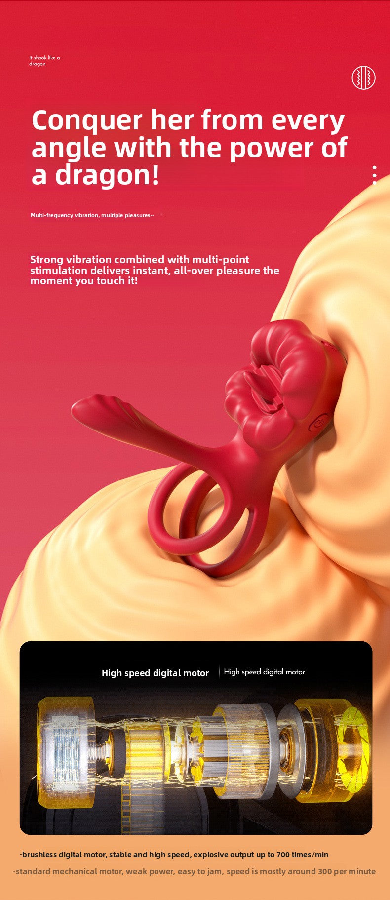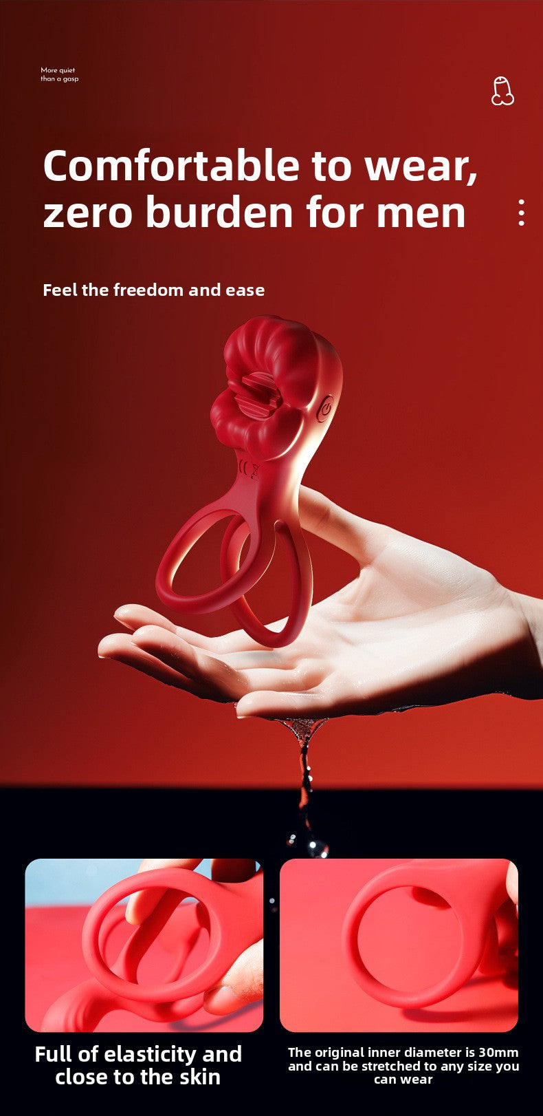 Big Mouth Cock Ring, Rose Flower Cock Ring, Couples' Sex Toys, Male Wearable, Couples' Shared Pleasure Vibrating Double Ring