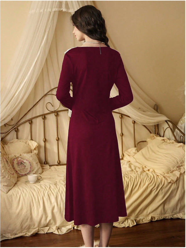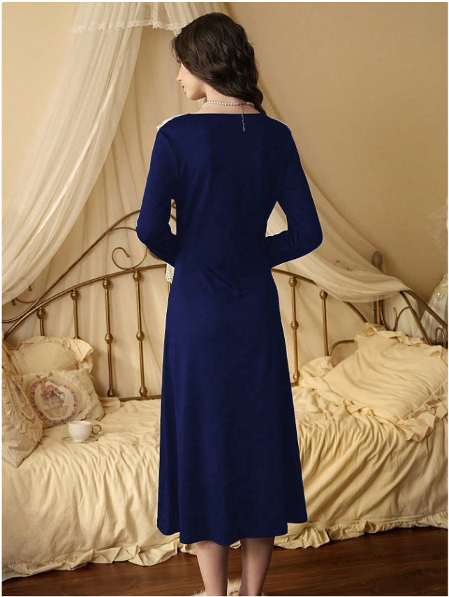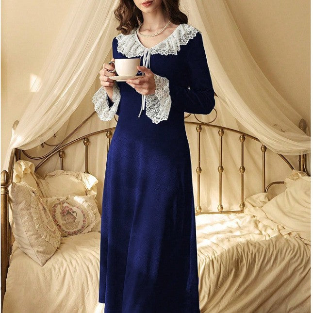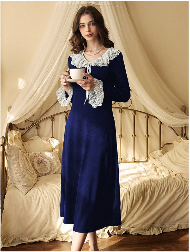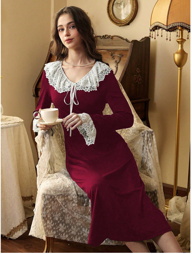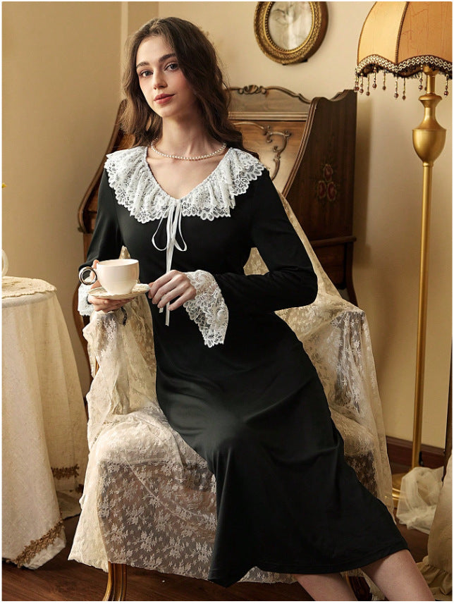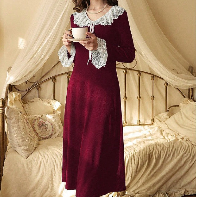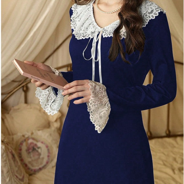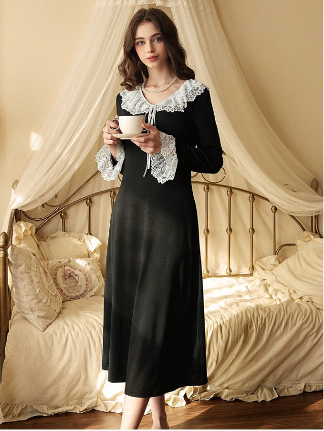 New sexy white-edged lace home slim-fit long dress lingerie set
